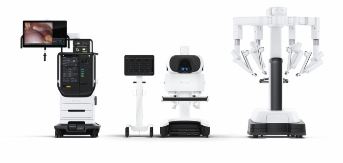 左よりタワー、コンソール、ロボット(画像:インチュイティブサージカル社より提供)